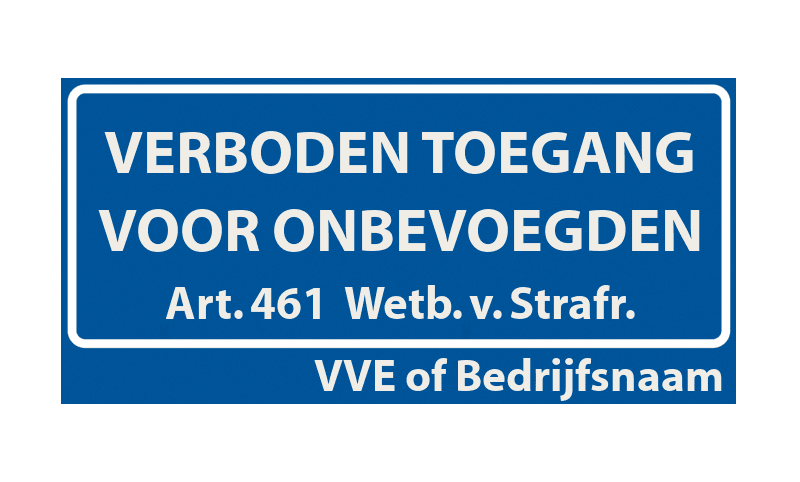 Vlak bordje verboden toegang voor onbevoegden art. 461 met eigen naam