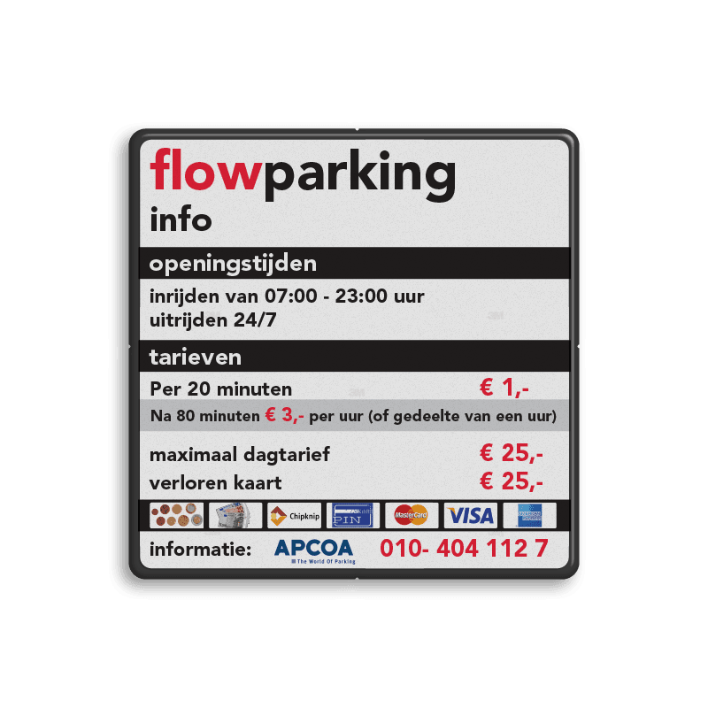 Vierkant informatiebord met parkeerinformatie in huisstijl